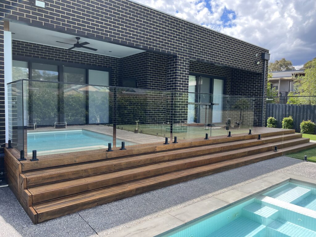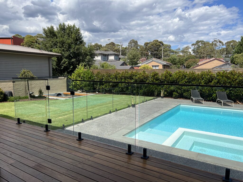 KK Concepts completed the design and installation of a premium frameless glass pool fence for a residential property in Victoria. This modern fencing solution enhances safety around the pool area while maintaining an unobstructed view of the landscape and outdoor living zones.